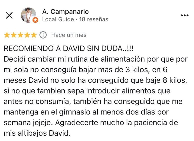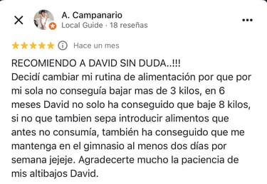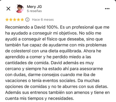Desde hace años acompaño a personas como tú a transformar su salud, su cuerpo y su relación con la comida, ofreciendo un enfoque totalmente personalizado, tanto en nutrición como en entrenamiento.