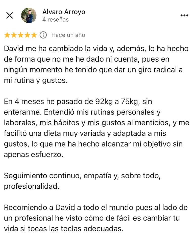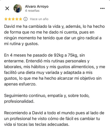 Estaré a tu lado siempre que lo necesites: si surge un imprevisto, una comida social o dudas al hacer la compra, podrás escribirme y resolverlo al momento. Resolveremos juntos cada obstáculo para que sigas avanzando sin complicaciones.